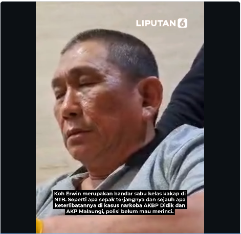 Diketahui, Ko Erwin diduga orang yang menyetor sejumlah uang untuk eks Kapolres Bima Kota AKBP Didik Putra Kuncoro melalui eks Kasat Narkoba Polres Bima Kota AKP Malaungi.
