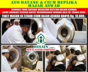 Juga ayo datang Simulasi mencium Replika Hajar Aswad persembahan dari Istana Yatim Training Center / Pusdiklat Yatim dan Dhuafa ujar SATIBI selaku ketua Pelaksana Hajatan Sidoarjo.