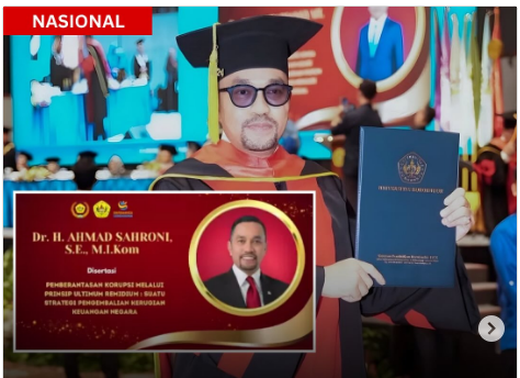 JAKARTA, SWARAJOMBANG.COM– Pasca aksi demo disertai perusakan dan penjarahan barang-barang, akhir Agustus 2025, seolah Sahroni tenggelang hilang ditelam bumi. Tetapi, kini politisi Partai NasDem, resmi menyandang gelar S3 Doktor Ilmu Hukum setelah menyelesaikan pendidikan di Program Pascasarjana Universitas Borobudur, Jakarta.