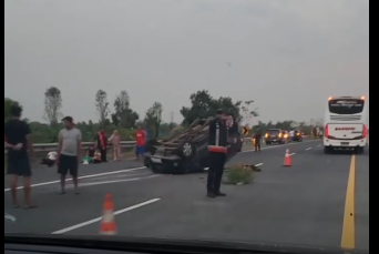 Mobil bernopol AG 1716 QJ yang mengangkut tujuh penumpang ini terbalik di lajur kiri jalan, menewaskan seorang perempuan dan melukai enam orang lainnya.