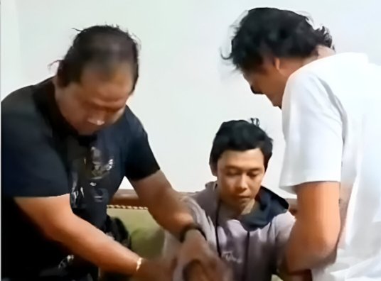 Pelaku (tengah) saat diringkus petugas