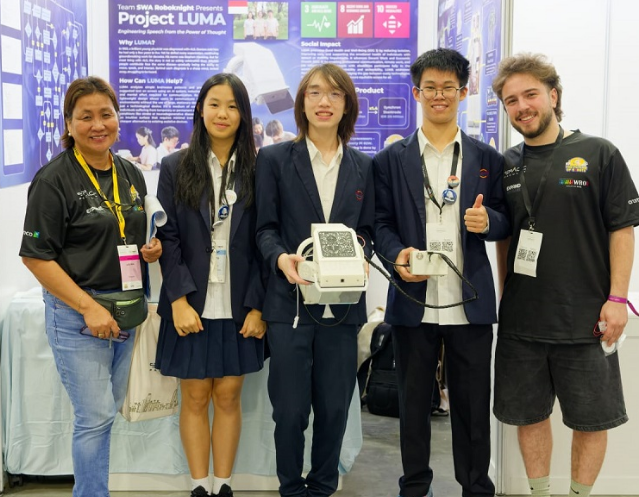 Tim SWA RoboKnights – Audric Tsai, Zhenxuan, dan Yik Yan – tampil unggul di kategori Future Innovators Senior. Mereka mengalahkan lebih dari 500 tim dari 91 negara, membawa pulang tiga medali emas serta Start-Up Award untuk ciptaan bernama LUMA.