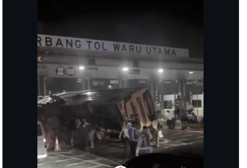 SIDOARJO, SWARAJOMBANG.COM – Bus pariwisata bernopol K 7622 OC milik Bali Kayana terguling di pintu masuk Gerbang Tol Waru Utama, Sidoarjo, sekitar pukul 23.32 WIB, Rabu (11/2/2026).