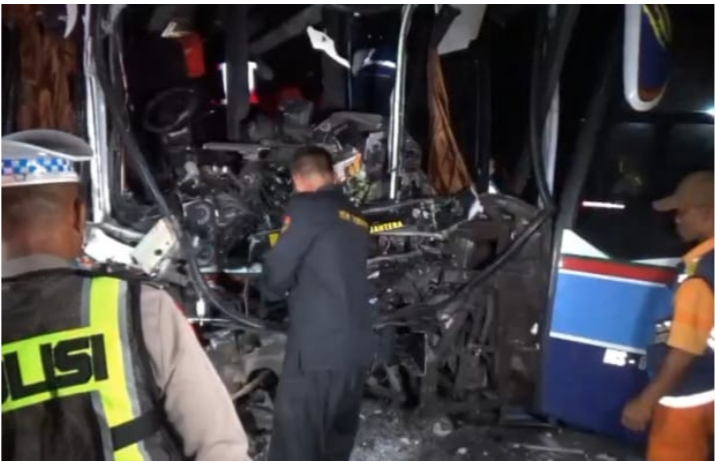 Bus dengan pelat N 7112 UR itu menabrak belakang truk tronton bermuatan pupuk (BA 8140 HU) pukul 00.11 WIB. Kedua kendaraan melaju searah dari timur ke barat di lajur 1, dengan cuaca cerah.