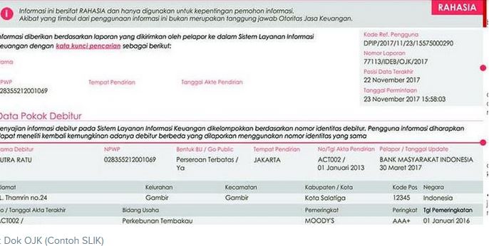 Mengutip laman pegadaian.co.id, skor SLIK OJK dibagi menjadi lima. Nasabah dengan skor 1 berarti memiliki riwayat kredit paling baik sedangkan yang memiliki skor 5 bermasalah dengan kredit macet.