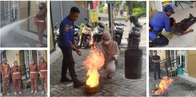 Petugas memberikan materia Pengenalan Materi Pencegahan dan Penanggulangan Kebakaran oleh Tim Pos Pemadam Kebakaran Jombang, Pengenalan APAR dan penggunaannya; Pelatihan, Sosialisasi dan Simulasi kepada peserta tentang Pencegahan dan Penanggulangan Kebakaran serta teknik pemadaman kebakaran.