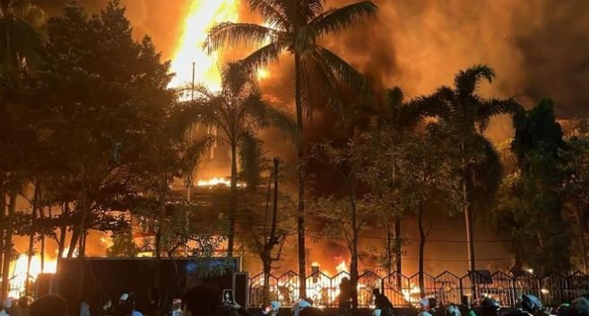 Aksi demonstrasi di Kota Makassar berakhir ricuh hingga terjadi pembakaran dua gedung yakni gedung DPRD Sulawesi Selatan dan DPRD Makassar, Jumat malam.