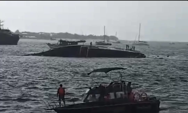 DENPASAR, SWARAJOMBANG.COM – Dalam gemuruh angin kencang dari arah barat yang mengamuk disertai hujan lebat seperti cambuk langit, kapal pinisi mewah Sharandy Of The Seas tiba-tiba miring ke kiri dan perlahan-lahan ditelan dasar laut di perairan Serangan, pelabuhan Serangan, Denpasar, Bali.