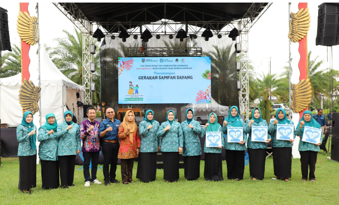 Penutupan acara ditandai dengan penandatanganan kerjasama antara PKK Kabupaten Jombang, DLH, dan Bank Sampah Induk Jombang, serta Flashmob “Sampah Sayang” sebagai simbol aksi nyata.