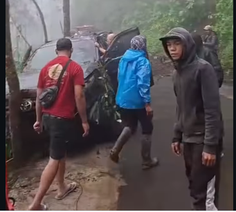Pengemudi membanting setir ke kanan untuk menghindari jurang, tetapi mobil tetap menabrak pohon pinggir jalan sebelum jatuh. Mobil membawa enam orang yang baru selesai wisata di Gunung Bromo.