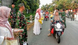 Sebelum acara dimulai, personil Koramil Jatirejo juga membagikan takjil kepada pengendara yang melintas di depan gerai KDMP.