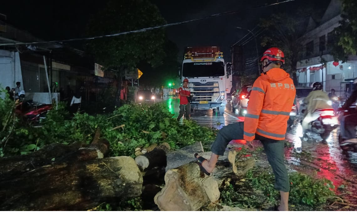 Salah satu insiden utama terjadi di Jalan KH Hasyim Asy’ari, di mana pohon besar roboh dan menimpa mobil yang membawa lima penumpang. Beruntung, korban hanya mengalami syok sementara tanpa luka serius, dan langsung dievakuasi.