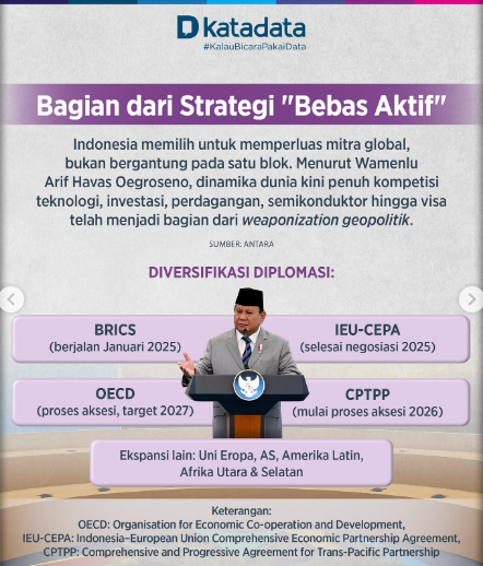 Selain BRICS, Indonesia juga tengah menjalani proses aksesi ke Organisasi Kerja Sama dan Pembangunan Ekonomi (OECD), menyelesaikan perundingan Indonesia–European Union Comprehensive Economic Partnership Agreement (IEU-CEPA), menjajaki keikutsertaan dalam Comprehensive and Progressive Agreement for Trans-Pacific Partnership (CPTPP), serta memperkuat kemitraan strategis dengan Uni Eropa, Amerika Serikat, dan kawasan Afrika.