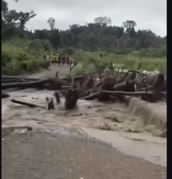 KREDONEWS.COM, KEROOM PAPUA – Warga Distrik Keerom, Papua, dikejutkan tumpukan kayu gelondongan hanyut terbawa arus Sungai Pas, menyebabkan satu jembatan utama putus saama sekali, pada Rabu (17/12/2025).