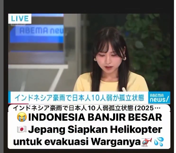 Pemerintah Jepang mempersiapkan helikopter untuk mengevakuasi warganya yang terjebak banjir bandang di Aceh, dengan laporan menyebutkan delapan warga Jepang dalam kondisi selamat sambil menunggu proses evakuasi tersebut.