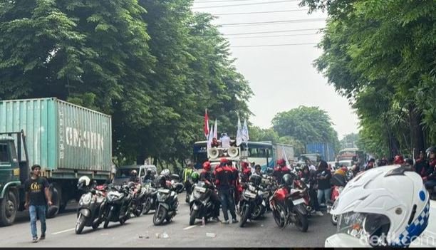 Di sisi lain, di Jalan Ahmad Yani, tepatnya di depan BNI juga terlihat beberapa kelompok buruh mulai berkumpul. Polisi tampak melakukan pengaturan agar arus lalu lintas tidak semakin tersendat.