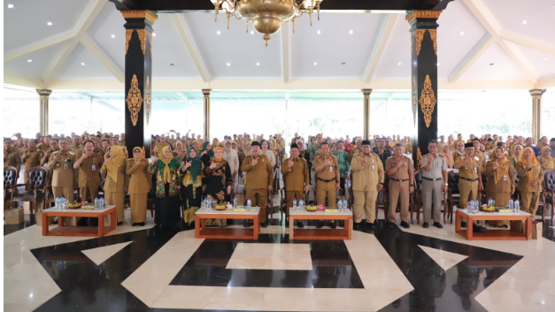 Warsubi Pimpina jajaran Pemkab Jombang mengikuti upacara secara daring, saat Presiden Prabowo Subianto meresmikan koperasi desa kelurahan Merah Putih (Kopdeskel MP) Senin, 21 Juli 2025 dari Klaten, Jateng, Foto: Diskominfo Jombang