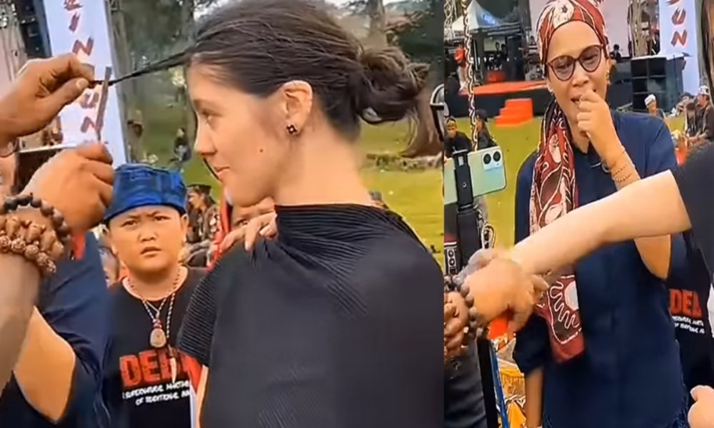 Pada awalnya, ia tampak kaget ketika rambutnya benar-benar terpotong oleh senjata tajam yang digunakan dalam aksi tersebut. Namun, kejutan tidak berhenti di sana.