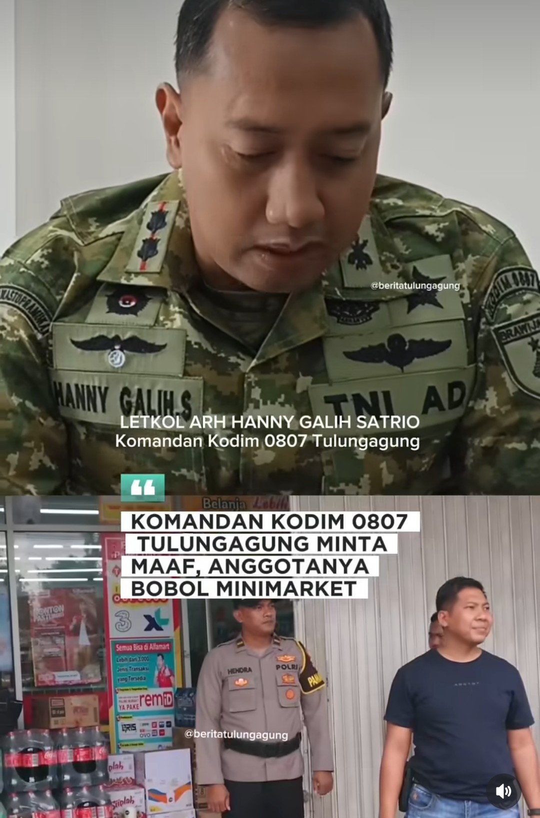 Letkol Arh Hanny Satrio Minta Maaf Atas Ulah Oknum Koramil Pakel Bobil 7 Minimarket di Tulungagung dan Trenggalek