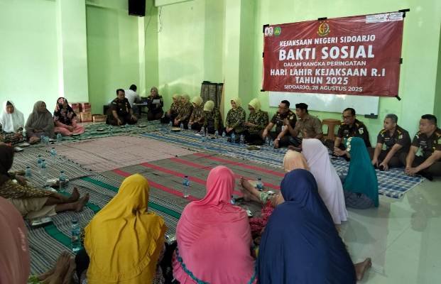 SIDOARJO, SWARAJOMBANG.COM-Sebagai wujud rasa syukur dan kepedulian sosial dalam menyambut rangkaian peringatan Hari Bhakti Adhyaksa (HBA) ke 80 Th, Kejaksaan Negeri Kabupaten Sidoarjo mengelar kegiatan bakti sosial dengan menyalurkan bantuan uang kepada Lansia dan paket sembako bagi Anak Yatim Piatu di “Yayasan Syuhada” yang berkedudukan di.Dsn.Tlogo DS.Sidokerto Kec.Buduran Kab.Sidoarjo pada Kamis (28/08/2025).