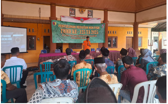 JOMBANG, SWARAJOMBANG.COM- Prajurit TNI Manunggal Membangun Desa (TMMD) ke-125, Kodim 0814/Jombang menggelar sosialisasi penanggulangan bencana alam di desa Kromong, Kecamatan Ngusikan, Kabupaten Jombang, Rabu 6 Agustus 2025.