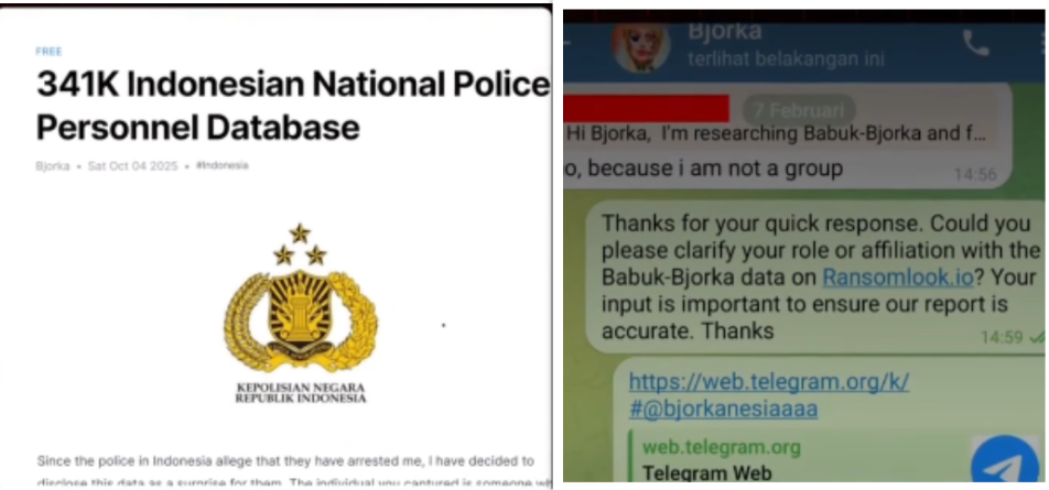 JAKARTA, SWARAJOMBANG.COM– Hacker ‘Bjorka’ seolah meledek aparat kepolisian, setelah konferensi pers keberhasilannya menangkap WFT, 21, pemuda asal Minahasa Utara, sebagai tersangka kasus pembobolan sistus di Indonesia. Pada tanggal 4 Oktober 2025, situs NetLeaks atas nama “Bjorka” merilis basis data 341.800 personel Polri dalam bentuk CSV (pangkat, nama, unit, nomor HP, email).