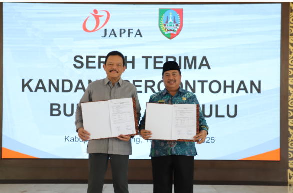 JOMBANG, SWARAJOMBANG.COM- PT Japfa Comfeed Indonesia Tbk (Japfa) menyerahkan kandang ayam percontohan sebagai bentuk CSR kepada Pemkab Jombang di Pendopo Kabupaten, Kamis (18/12/2025).