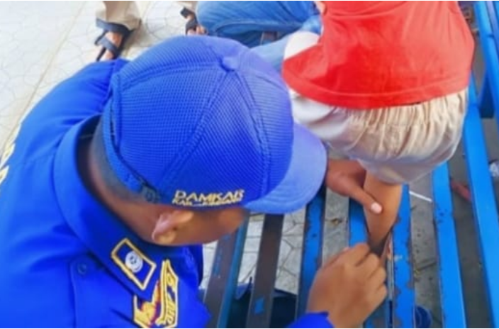 Kejadian terjadi pada Sabtu (10/1/2026) dan langsung ditangani secara profesional oleh petugas Damkar. Seorang anak tak sengaja menyisipkan kakinya ke celah besi teralis bangku di halaman rumah sakit pemerintah daerah tersebut.