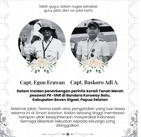 BOVEN DIGOEL, SWARAJOMBANG.COM – Tim awal aparat keamanan telah berhasil melakukan evakuasi jenazah pilot Egon Erwan dan kopilot Baskoro dari area hutan menuju Bandara Korowai di Kabupaten Boven Digoel pada malam hari tanggal 11 Februari 2026.