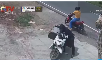Beberapa menit kemudian: Dua pelaku berpakaian hitam dan bertopi datang berboncengan; satu membobol motor dalam 22 detik dan kabur dengan 105 paket.