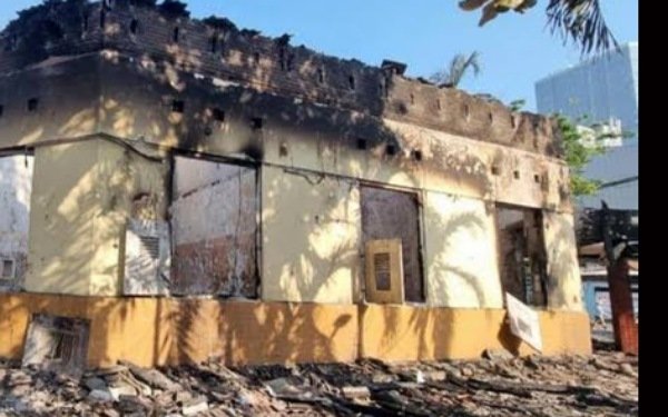 Kebakaran melahap hampir 90 persen bangunan Polsek, meninggalkan puing pung, bahkan atap gentengpun amblas dilalap api, yang masih tersisa hanya bangunan Masjid.