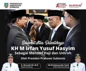 JOMBANG, SWARAJOMBANG.COM – Presiden Prabowo Subianto pada hari Senin, 8 September 2025, melantik empat menteri dan satu wakil menteri, salah satunya KH. Mochamad Irfan Yusuf Hasyim, yang dikenal dengan panggilan Gus Irfan.