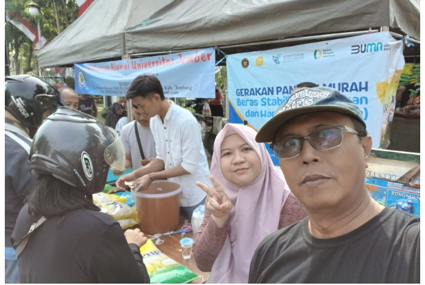 Penjelasan disampaikan saat berlangsung Cara Free Day (CFD), Minggu 10 Agustus 2025, di depan kantor Disdagrin Jombang, tengah menggelar pasar murah, berupa beras PHP Bulog dengan harga Rp 56.000/ 5 kg.
