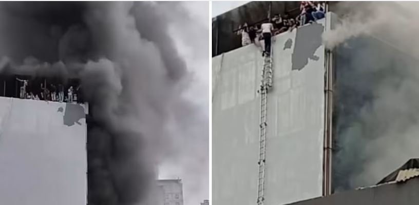 Sebuah video memperlihatkan para karyawan berada di atap gedung menunggu diselamatkan, sementara asap mengepul di sekeliling mereka. Tangga panjang digunakan untuk mengevakuasi para korban.